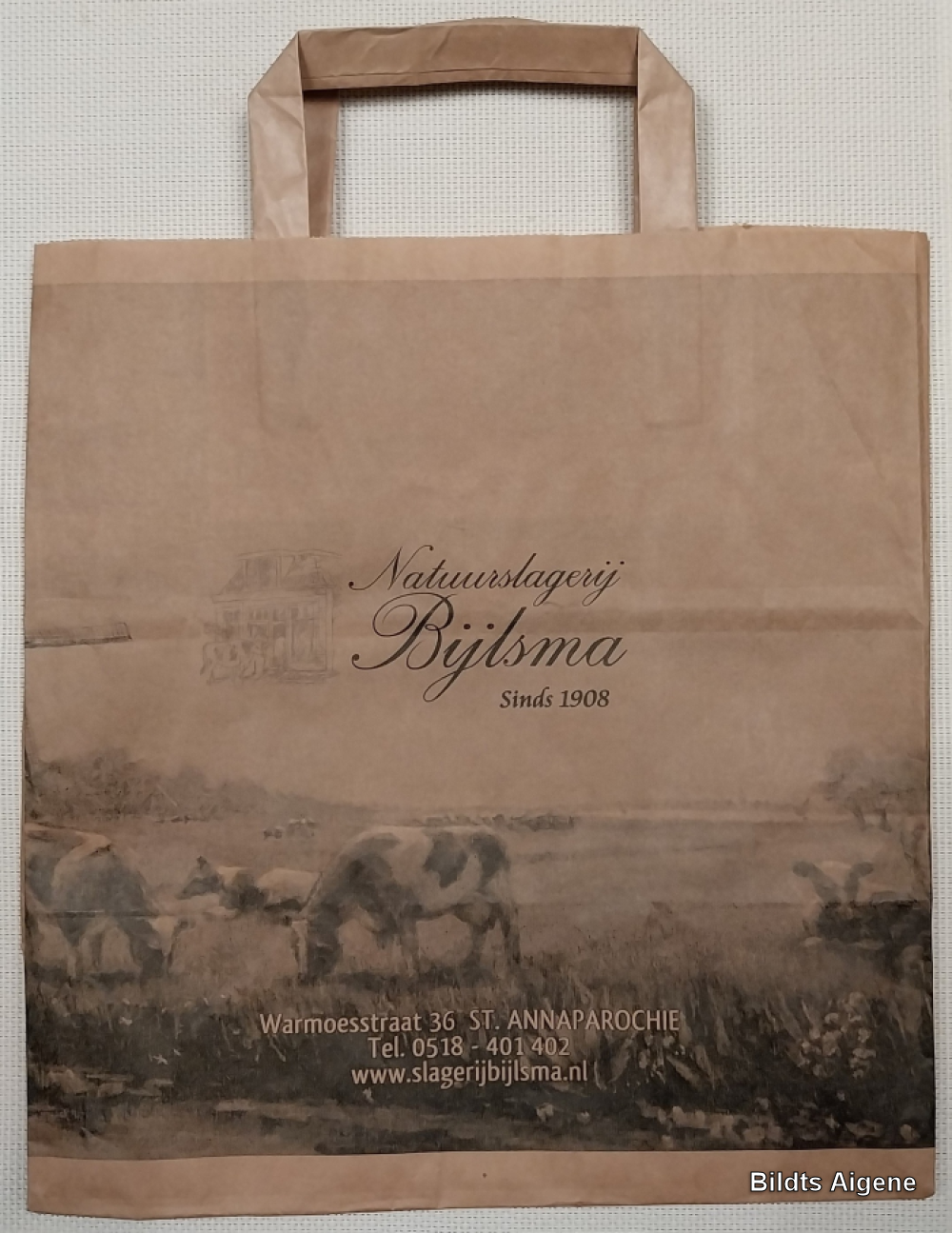 Tasje met opdruk "Natuurslagerij Bijlsma sinds 1908".