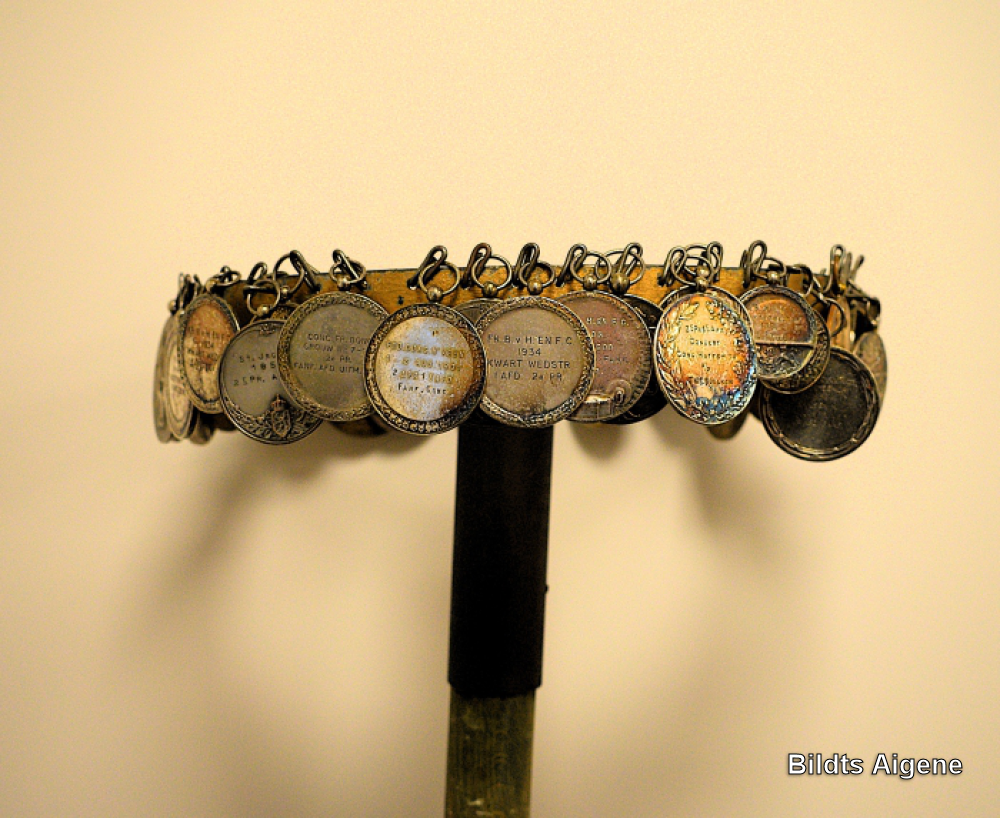 Topornament met medailles voor een vaandelstok van het korps Crescendo in Oudebildtzijl.