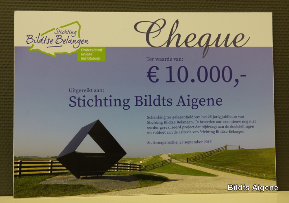 Het bedrag is besteed aan de bruine borden "Welkom op 't Bildt" die geplaatst zijn bij de toegangswegen van de oude gemeente 't Bildt.