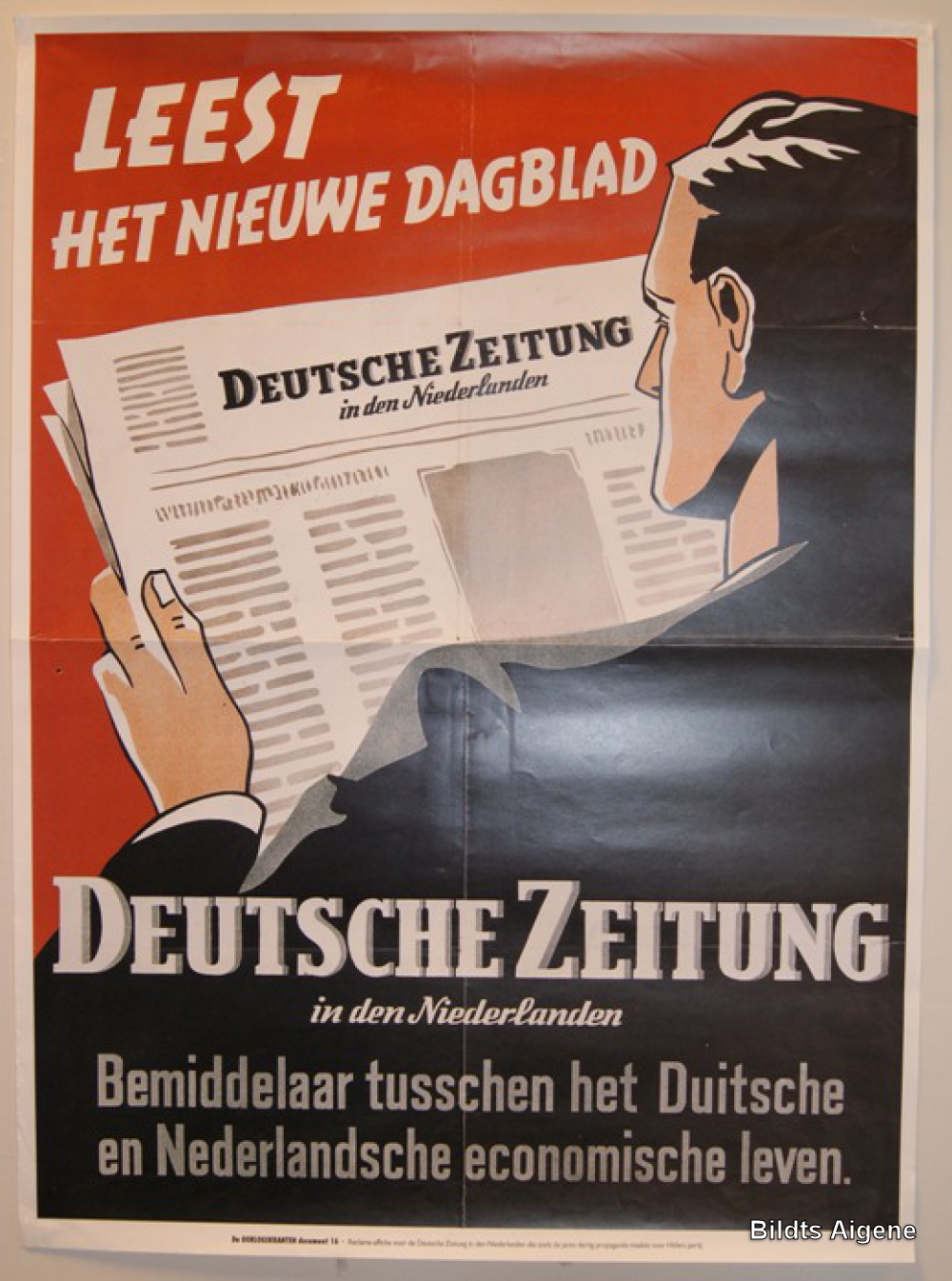 Reclame affiche voor de Duitse Zeitung in den Niederl�nden, die sinds de jaren dertig propaganda maakte voor Hitlers partij