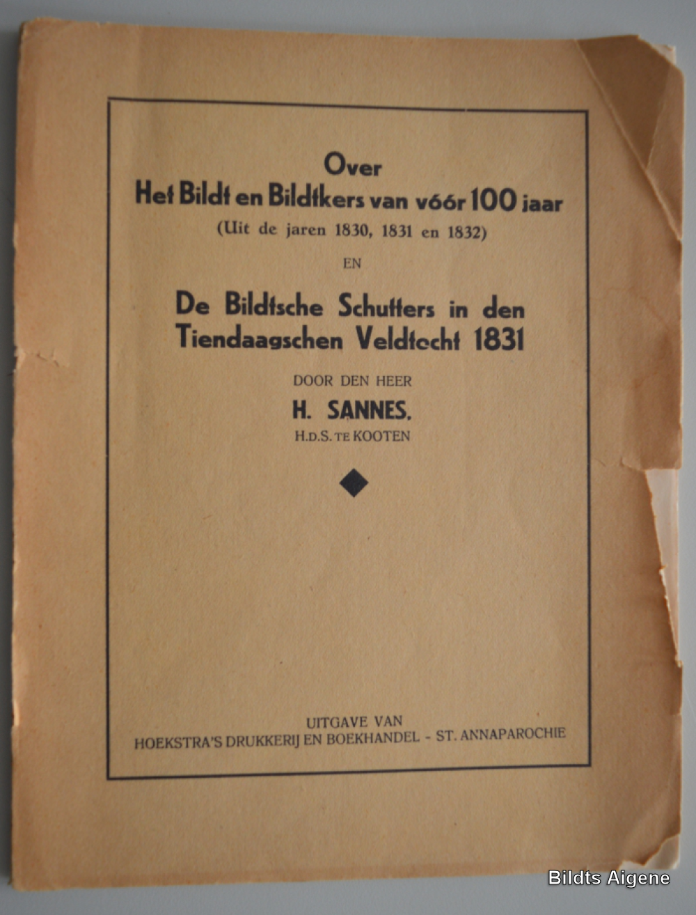 Boekje over het Bildt en Bildtkers van voor 100 jaar - "Bildtse schutters in den Tiendaagschen Veldtocht 1831, van H. Sannes.