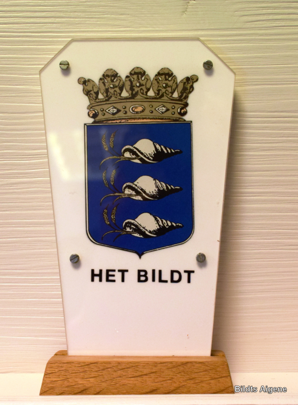 Stander met het wapen van Het Bildt aan de voorkant en aan de achterkant met Bildtse groetnis. De originele borden dienden als gemeente grens aanduiding.