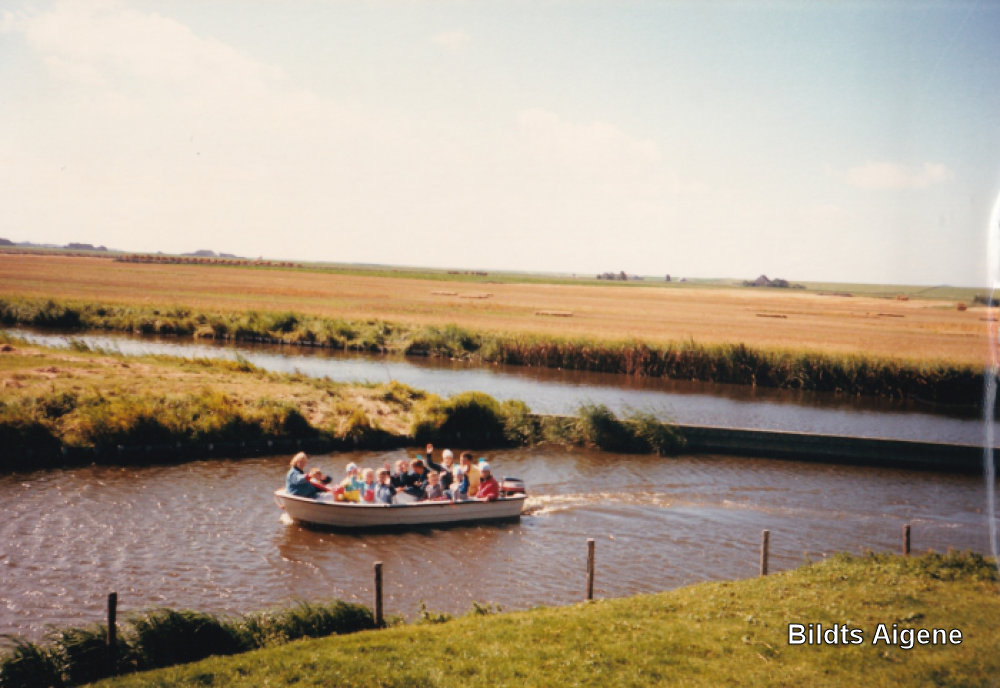 Bij heropening na inpandige verbouwing van de school met de boot van Sjouke Lep naar Zwarte Haan