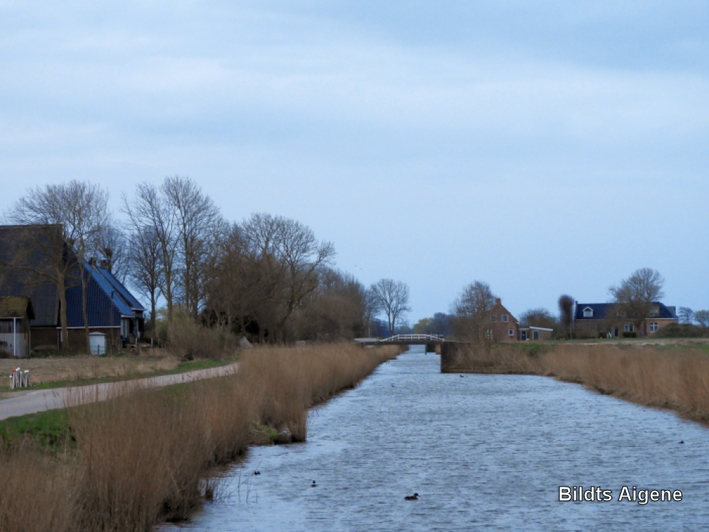 Koudeweg met Koudevaart. Links op voorgrond boerderij "Uijlenburg", rechts boerderij van fam. Hoogland eerder fam. van der Staag.