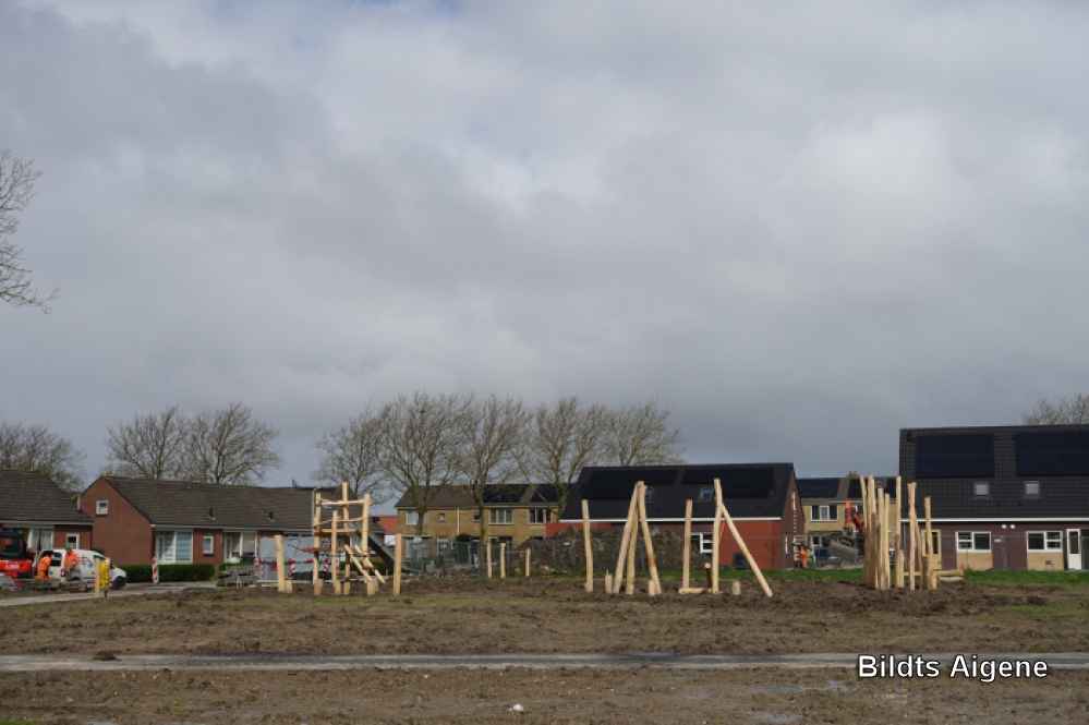 Inrichting park, het eerdere sportveld, met speeltoestellen.