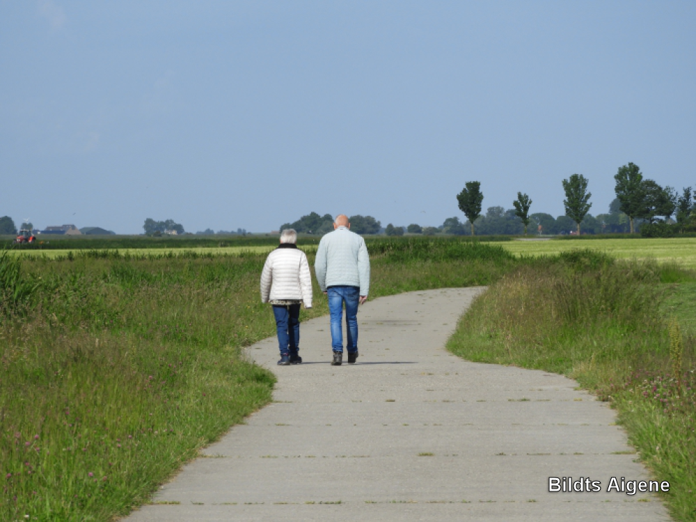 Wandelaars op het Kassenpad. Kassenpad is een pad welke loopt tussen Middelweg-west en het Zuideinde.
