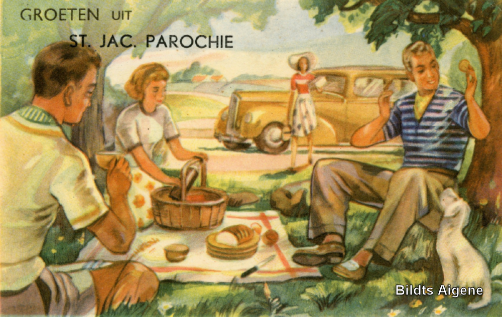 Ansichtkaart "Groeten uit St. Jac. Parochie."