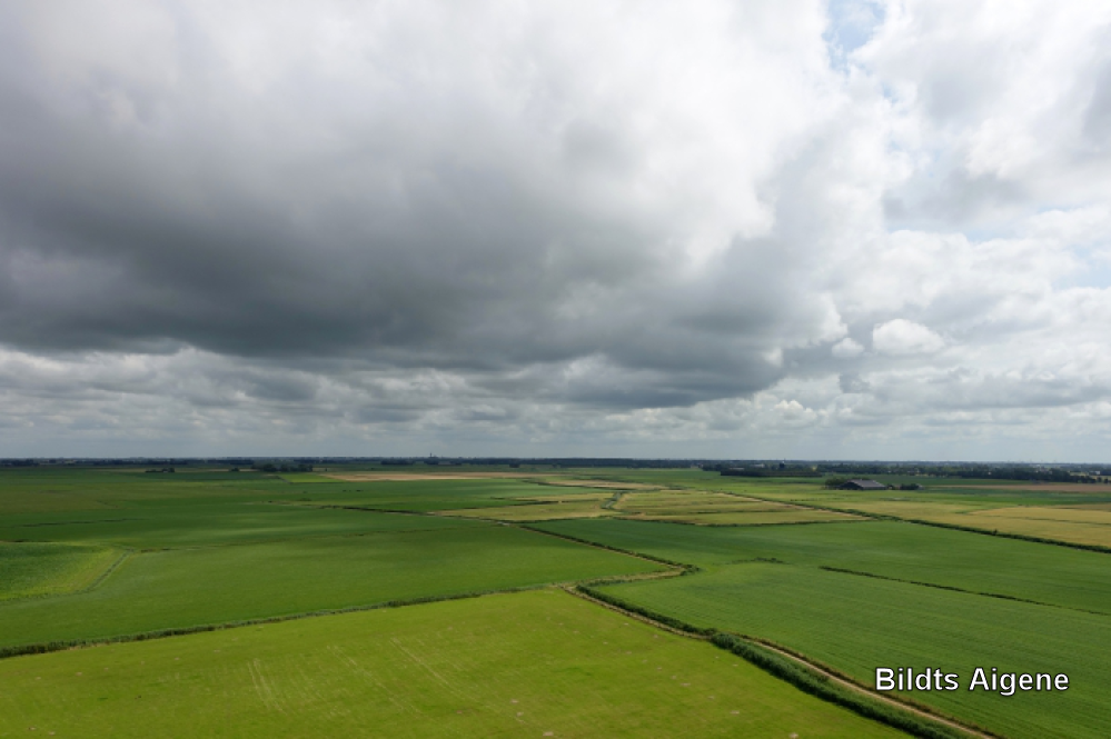 Foto genomen vanaf de watertoren. Zicht op de Zuidoosterpolder kijkend naar het zuidoosten. Rechts het "Kassenpad" welke loopt vanaf het Zuideinde naat Middelweg-west.
