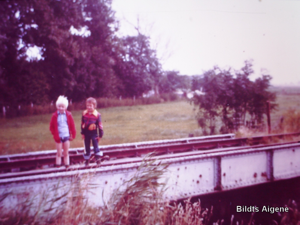 Spoorbrug in de voormalige lijn Stiens Harlingen. Links Hessel de Weert, naam rechter persoon onbekend.