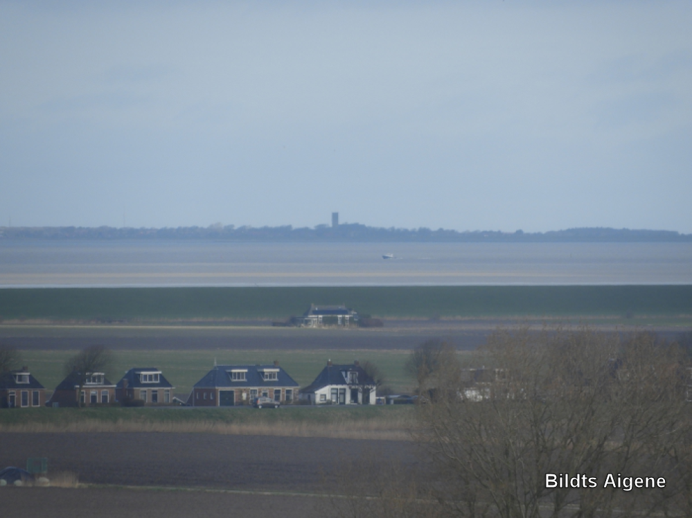 Oudebildtdijk ter hoogte van huisnr. 786 tm 794. Op achtergrond 't Blauwe huis nabij de zeedijk.