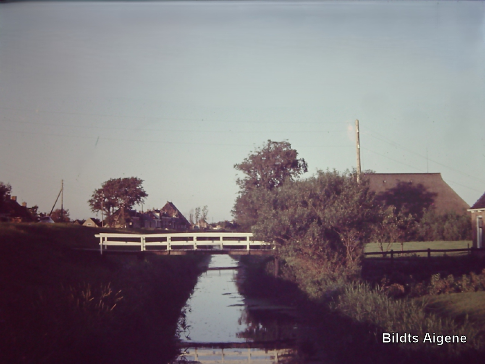 Oudebildtdijk, de Oosthoek, links café "de Oosthoek" en rechts boerderij van fam. J. van der Weg