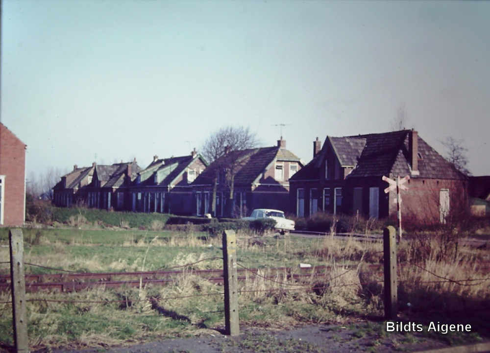 Grietmansstraat, op voorgrond de in 1971 opgeheven spoorlijn Stiens-Harlingen
