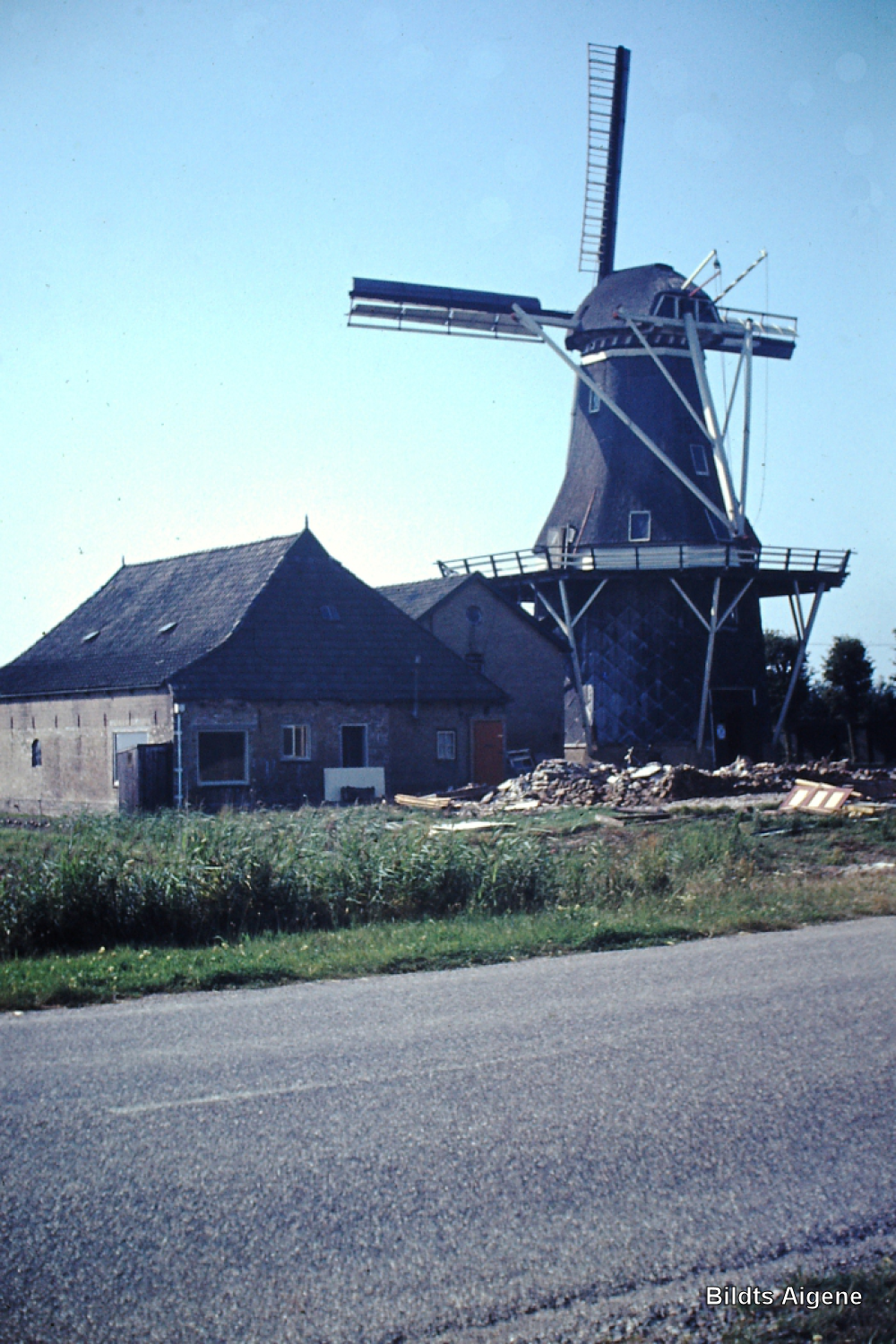 Molen "De Welkomst" ('t Hoekje) graanmolen. De woningen ervoor zijn net afgebroken.