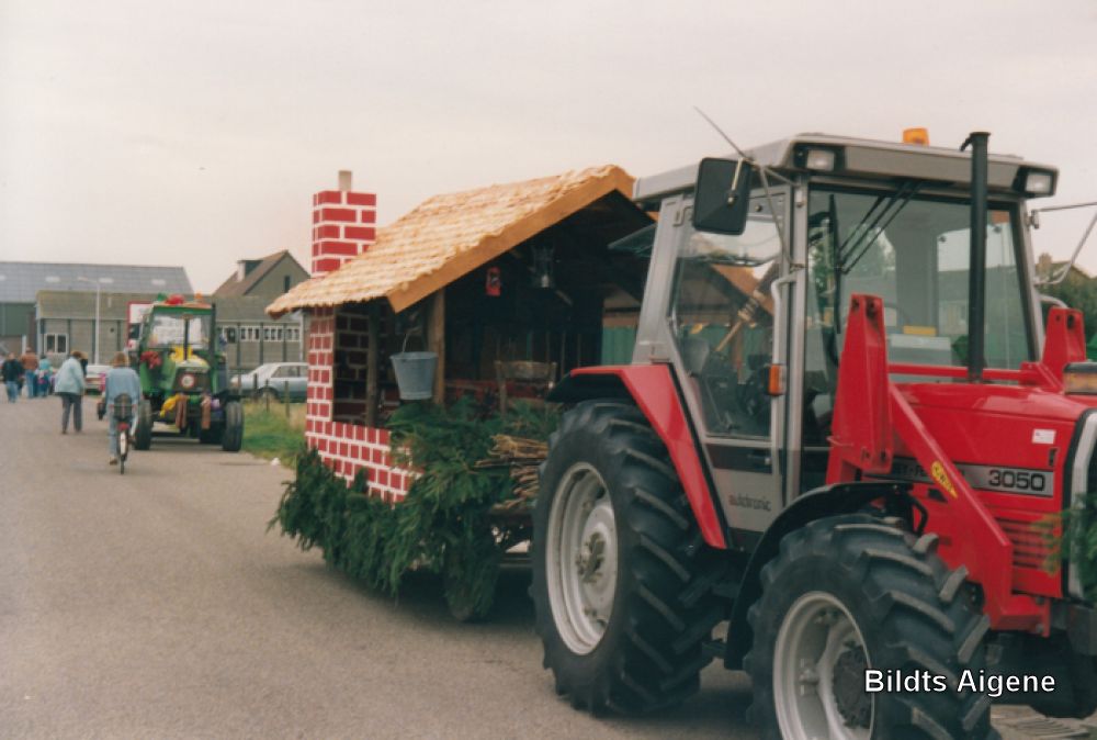 Dorpsfeest, optocht versierde wagens.