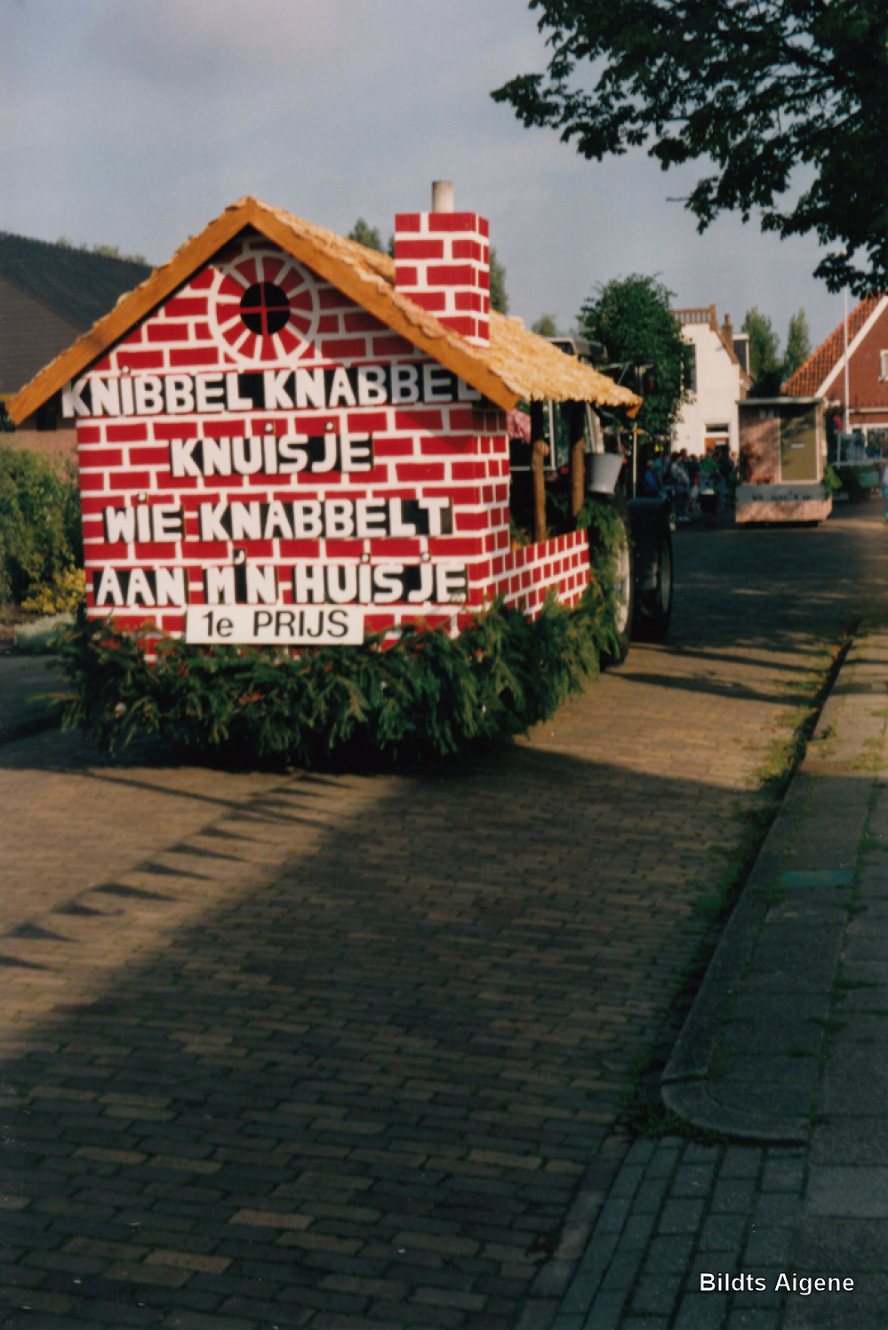 Dorpsfeest, optocht versierde wagens.