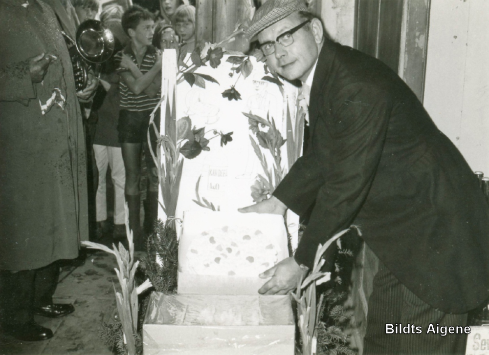 Feest, persoon vooraan rechts: Sierd Zondervan had een taart in de kruiwagennaar Stiens gebracht t.g.v. de geboorte van de dochter van Gerrit Bremer. Wieke Zondervan en Baukje van der Weg vergezellen hem. Sierd had dit al jaren daarvoor beloofd.
